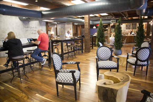 It’s Tuesday morning and the tabletops on the second floor of Station House are filling up with young professionals checking emails or returning calls.