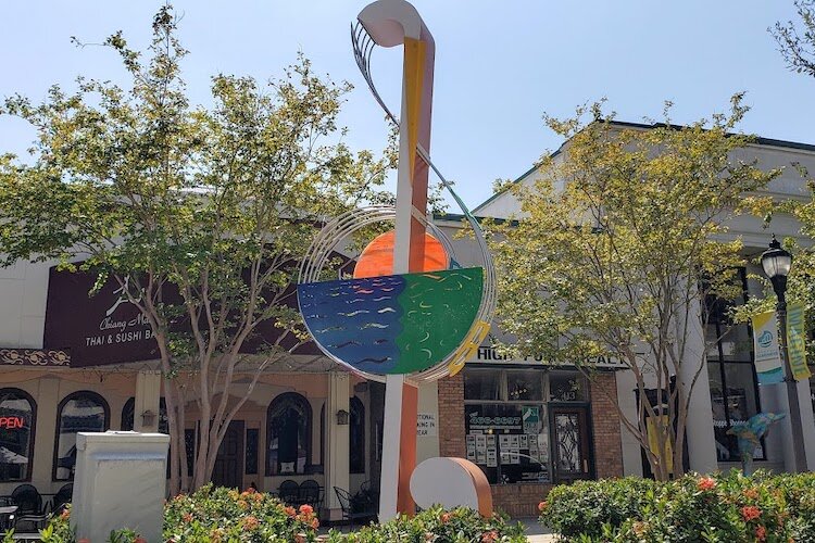 Donald Gialanella created the compelling stainless steel bust “Gaia” inspired by the artist’s fascination with the human face and named after the Mother Earth goddess of Greek mythology. “In a Musical Atmosphere” by artist Adi Ben Dov iDEA combines aluminum and four types of glass. The metal represents the stability, security, and calmness, which characterize Clearwater’s growth in the spheres of family, education, spirit, art, and business. The glass represents the city’s transparency and brotherhood. The flowing musical notes represent the affinity, respect, and space for Clearwater’s art and music culture.
