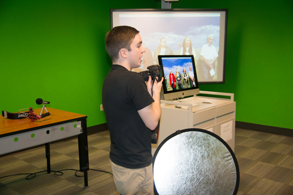 Courtesy of USF – A student at the USF Library Digital Media Commons conducts a presentation.