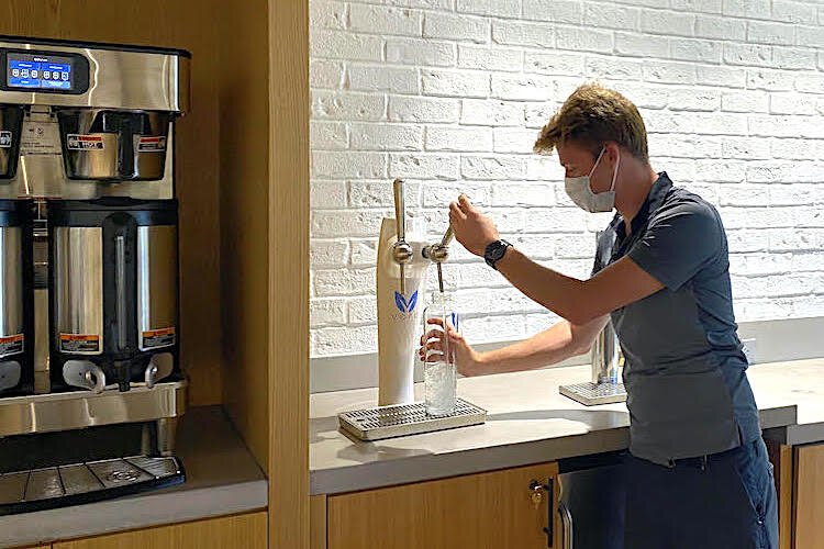 Courtesy of The Ring – Ryan Malize, CEO of Pinellas Computers, rehydrates from an 8-stage filtered water dispenser.