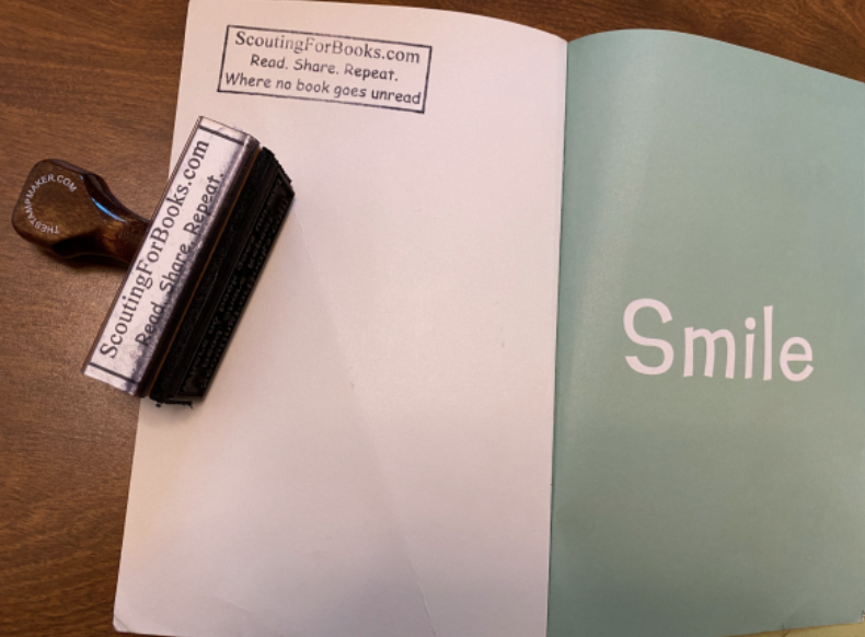 Each book she receives during that project is hand-stamped with her website name, ScoutingForBooks.com, along with her slogan, “Read. Share. Repeat. Where no book goes unread.”
