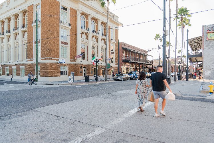 Zebrina Edgerton-Maloy – Shoppers stroll down East Seventh Avenue past the Italian Club of Tampa.