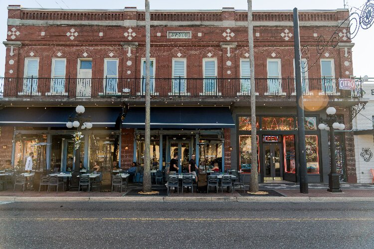 Diners enjoy the outdoor seating at Ybor City's Acropolis Greek Taverna.