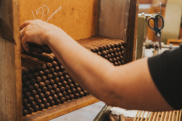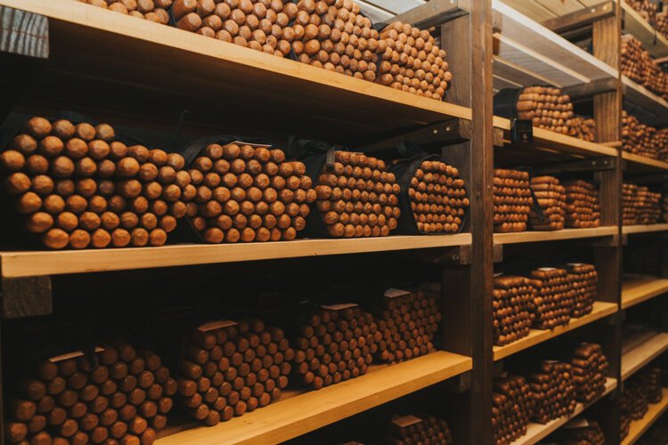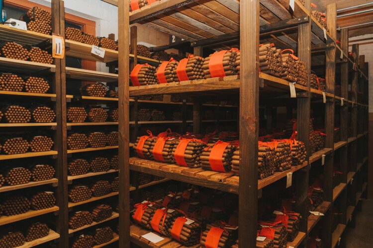 In a basement aging room, neatly stacked bundles of cigars fill the shelves. In here, premium brands like “The American” are set to age for a year or more. Across a hall, the cigar vault holds artifacts like the last sack of pre-embargo Cuban tobacco and “the world’s oldest cigars,” which date to 1857 and were recovered from a shipwreck discovered in 1988 160 miles off the South Carolina coast.