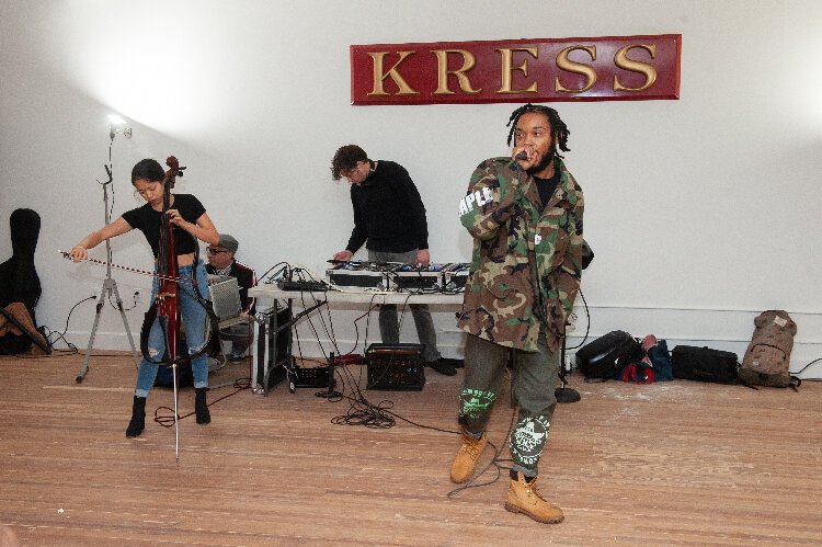 The Kress Building’s second-floor gallery had a formal opening in late January with Tampa-based sculptor, Kendra Frorup’s exhibition “Jewels and Binoculars Hang from the Head of the Mule” and Tampa artist Takeo Faison’s first solo exhibition titled “What Does the Cowboy Dream About.”