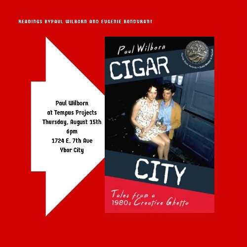 Paul Wilborn/Tempus Projects – Paul Wilborn and his wife, actress Eugenie Bondurant, read excerpts from “Cigar City: Tales From a 1980s Creative Ghetto” August 15th at Tempus Projects.