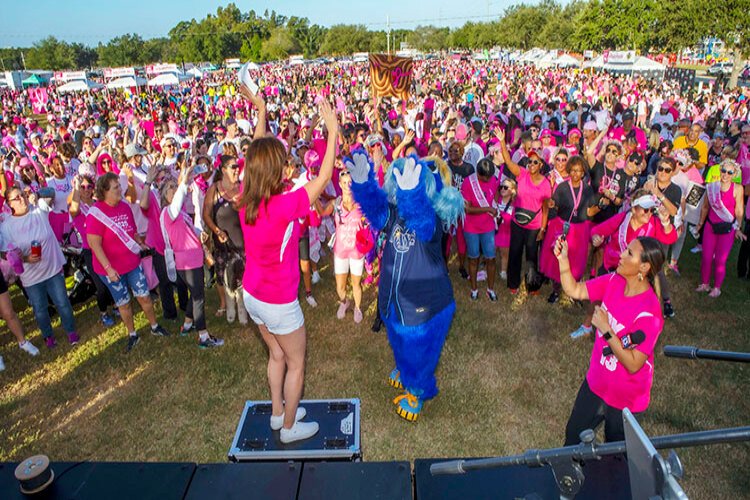 Photos by Kimberly DeFalco – Fox 13 anchor and breast cancer survivor Linda Hurtado joined the Tampa Bay Rays mascot Raymond to MC the American Cancer Society’s Making Strides Against Breast Cancer Walk at Raymond James Stadium. An estimated 25,000 people attended.
