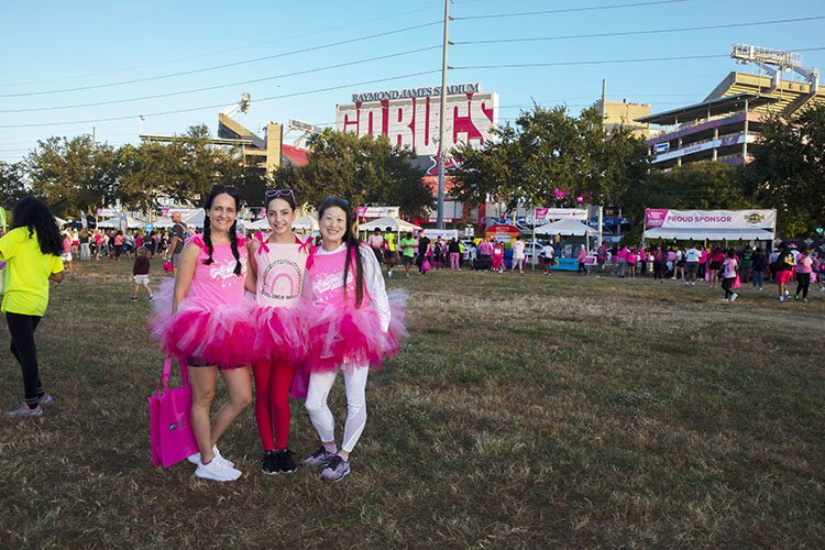 Photos by Kimberly DeFalco – Felice Rogers, Isabel Evans and Carolyn Ogden, members of the Tampa General Hospital Clinical Education Department, at the American Cancer Society’s Making Strides Against Breast Cancer Walk at Raymond James Stadium.