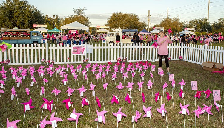 Photos by Kimberly DeFalco – Tampa’s Susan Fernandez, a volunteer committee member for the American Cancer Society’s Making Strides Against Breast Cancer Walk, stands in the Garden of Hope, where visitors can add the name of a loved one to a pinwheel.