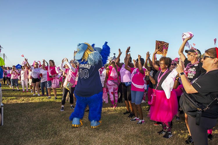 Photos by Kimberly DeFalco – Tampa Bay Rays mascot Raymond fires up the crowd at the American Cancer Society’s Making Stride Against Breast Cancer Walk at Raymond James Stadium.