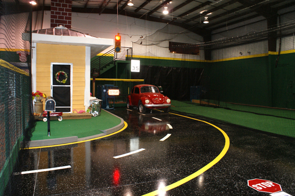 The 16,500-foot-square building houses 9 batting cages with arm-style pitching machines; a “fun cage” containing several deflection point zones for catching practice; a parent lounge and observation deck with WiFi, flat screen TVs, golf simulators and beer and wine bar; an exercise room, video games, snack station and a pro shop.