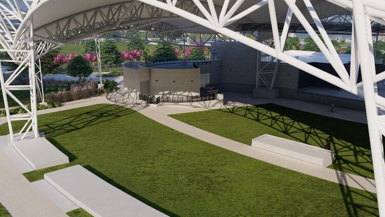 A new amphitheater will have a 4,000-seat covered pavilion and lawn seating for 5,000 more people at a concert venue that, with no permanent infrastructure, previously relied on its waterfront location to draw performers and crowds. Ruther Eckerd Hall will manage and operate the amphitheater under an agreement with the city.