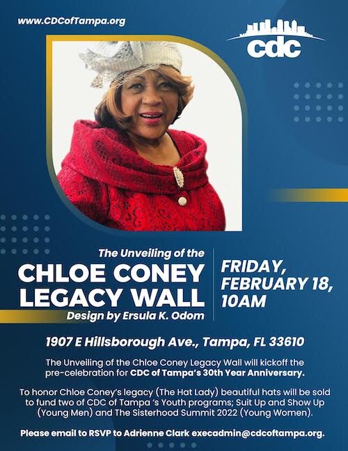 Chloe Coney is known in Tampa as the woman of many hats. She does not go unnoticed in the elegant and stylish hats that are her signature look.