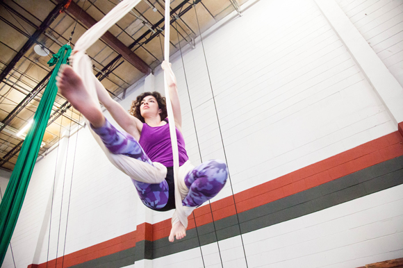 Inside the airplane hangar-sized facility, multicolored fabrics, ropes, and hoops hang from steel beams in the ceiling. On a recent Thursday evening Watson worked with members of the Aerial Dragons, Keep’s resident performance troupe, in preparation for Carpe Noctem (Seize the Night), a vampire-themed performance they held at the Straz Center on August 3, 4, and 5.