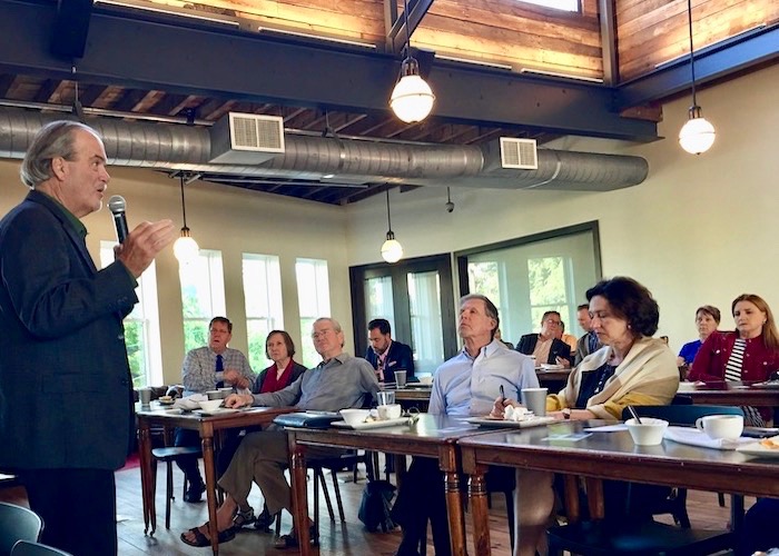 Author Robert N. Macomber visits the Oxford Exchange and Cafe con Tampa to launch Honoring the Enemy, the 14th novel in a series, which starts with an opening scene at Plant Hall. Read an excerpt.