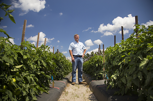 The Center has a successful tomato breeding program run by Sam Hutton, along with peppers, watermelon, cantaloupe, squash and cucumbers. Despite successes in the laboratory and the field, Vallad points out there are still major challenges. Some 30,000 acres of tomatoes are planted in Florida every year, and every acre is planted, staked and harvested by hand; it is very labor intensive.