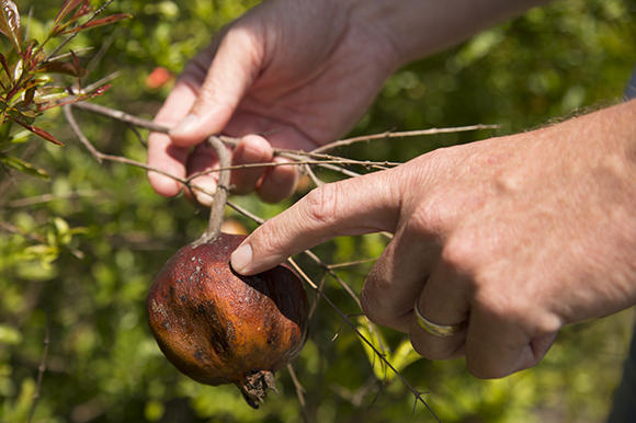 But it’s not quite as easy as it sounds. Harvested in late summer and early fall, Florida pomegranates need to survive the Sunshine State’s heat and humidity, which is not their natural growing environment. The Center is currently focused on developing Florida-friendly pomegranate varieties, while at the same time testing various chemicals and fungicides to ensure a healthy and profitable crop. Once the right preventative mixture is found, it will be submitted to the EPA for approval for commercial use in Florida.