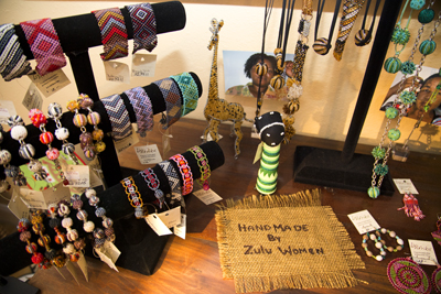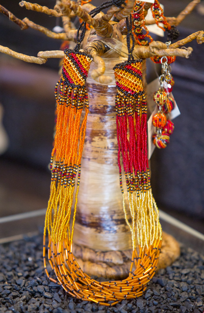 Items are made using glass beads and signal, an African grass. Other jewelry is made from cow bones and horns. Many of the items are priced below $20.