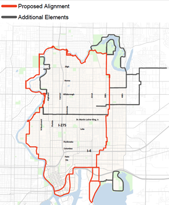 Griffin and Young-Green are looking to construct a loop connecting Old Seminole Heights, Southeast Seminole Heights, South Seminole Heights, V.M. Ybor, East Tampa, Historic Ybor, Ybor Heights, Palmetto Beach, Tampa Riverwalk, Tampa Heights, Ridgewood Park, Riverside Heights, the Channel District and downtown Tampa neighborhoods.