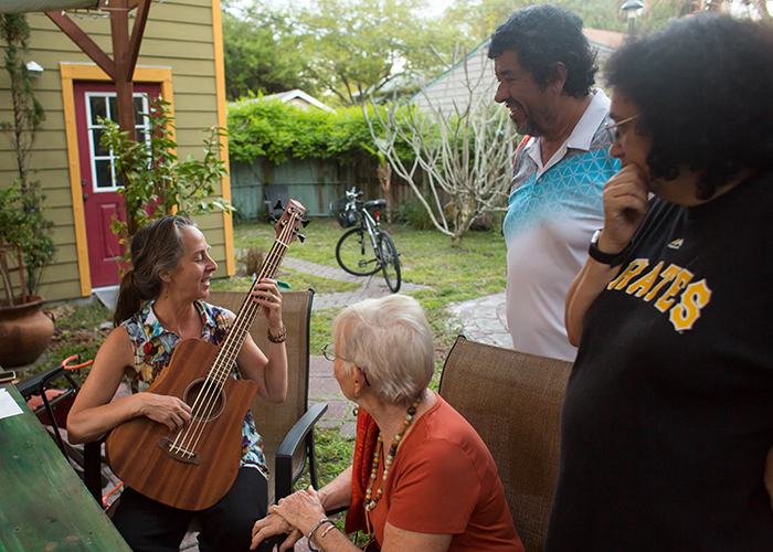Nanette Davis, a former science teacher at Boca Ciega High School, lived in the Old Northeast neighborhood of St. Petersburg with her husband Robin Davis until a year-and-a-half ago. “We kept hearing all of our friends talking about how everyone was moving to Kenwood,” says Davis. “So we decided to move here too and joined the arts enclave. It was an instant connection. Now I’ve just finished writing a memoir that is soon to be published. Next will be a Young Adult fiction. That’s my dream and I’m going to make it happen. Everyone here is involved in something creative. It’s a very welcoming community.”