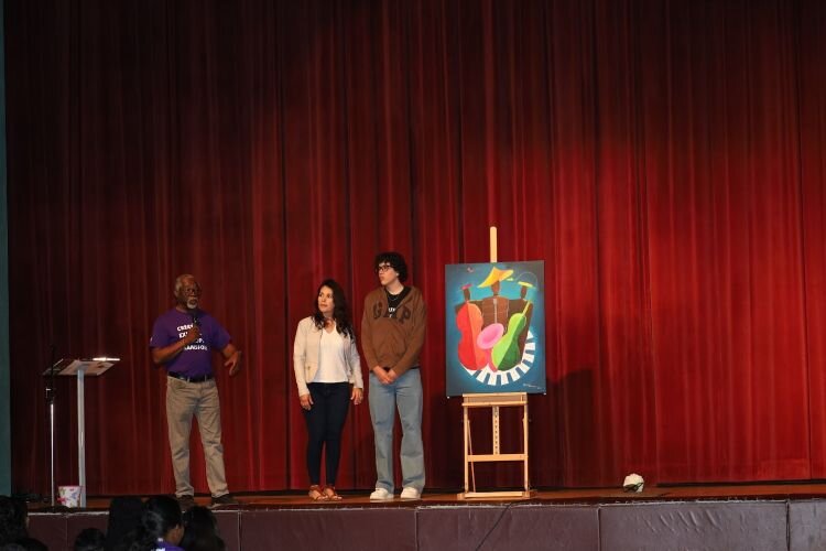 Prodigy ambassador Edwin, who started in the program as a 14-year-old high school freshman, is recognized for his artwork during a March 2024 showcase event.