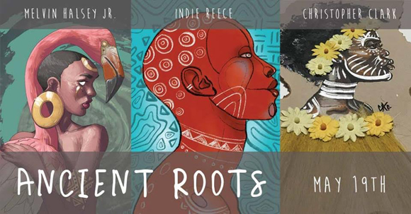 In a three-person show featuring the works of Melvin Halsey Jr., Indie Reece, and Christopher Clark, the exhibition Ancient Roots will be opening at MergeCulture (previously Illsol) in North Tampa on May 19. Though each artist works in a different medium ranging from paintings to digital to multi-media, there are connections to African and Caribbean culture that ties their work together.