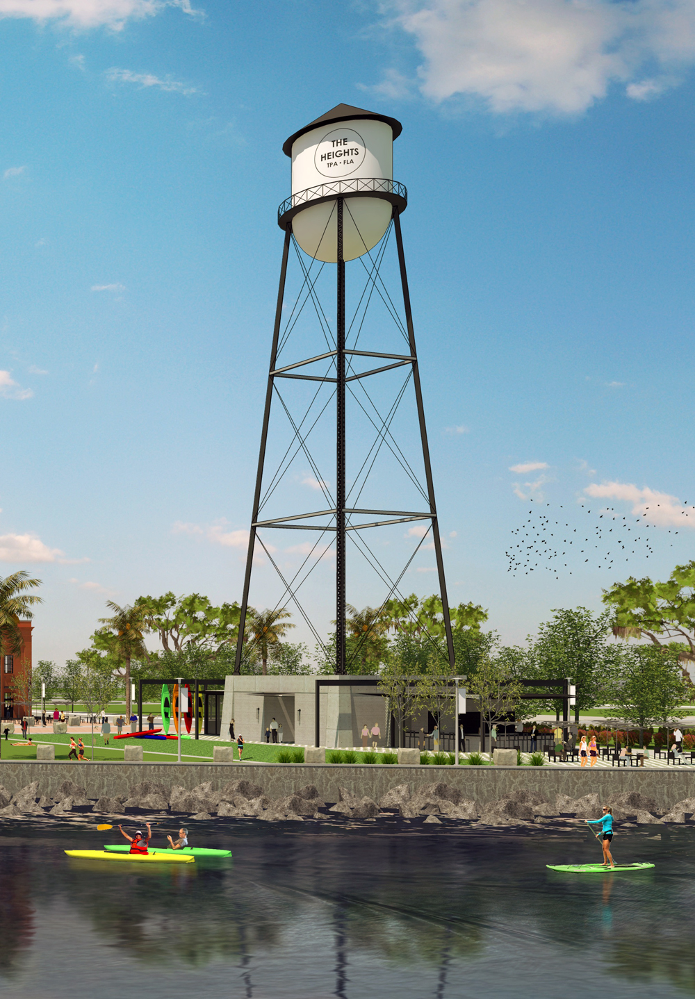 The restaurant will sit along the Tampa Riverwalk under a 165-foot water tower, a tribute to a tower that once sat on the property. The new, similar tower came from a field in Bartow and has been renovated.