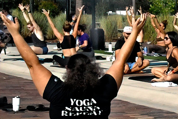A photo gallery from Yoga Collaboration on the Lawn, a hurricane relief fundraiser for Feeding Tampa Bay that 10 local yoga studios organized at Armature Works in Tampa.