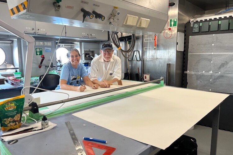 Florida artists Carol Mickett and Robert Stackhouse are crossing the ocean aboard the Falkor to capture its essence in paintings, images, and film while calling attention to climate change.