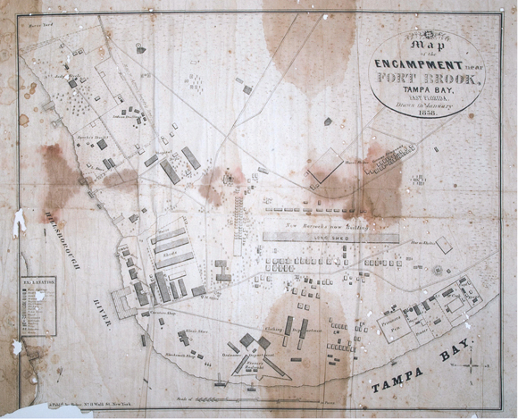 After the fort property was decommissioned by the War Department, there was a mad rush to see who could gain control. The Town of Tampa laid claim, as did a number of homestead applicants. Others simply moved onto the former fort property in an attempt to claim squatters’ rights. Litigation soon followed, and it included all of downtown Tampa south of Whiting Street between the Hillsborough River and today’s Ybor Channel.