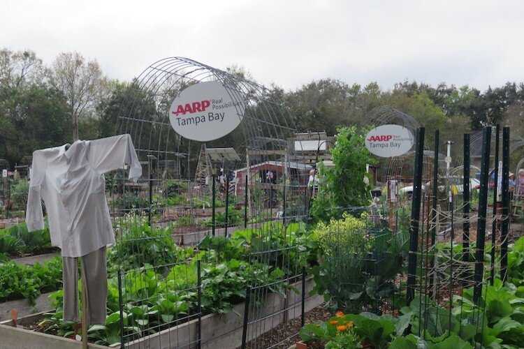 The local chapter of the American Association of Retired Persons, AARP of Tampa Bay, has a group that has been gardening together for three years to benefit the food pantry at the Village Presbyterian Church in Carrollwood. AARP sponsors two raised 4 foot X 16 foot double-beds that produce a staggering average yield of 660 pounds of food each season.