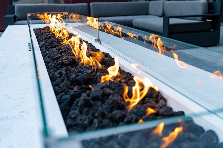 Courtesy of Mercury Advisors – Gas fireplaces can make for a cozy, romantic ambiance outdoors in The Courtyard.