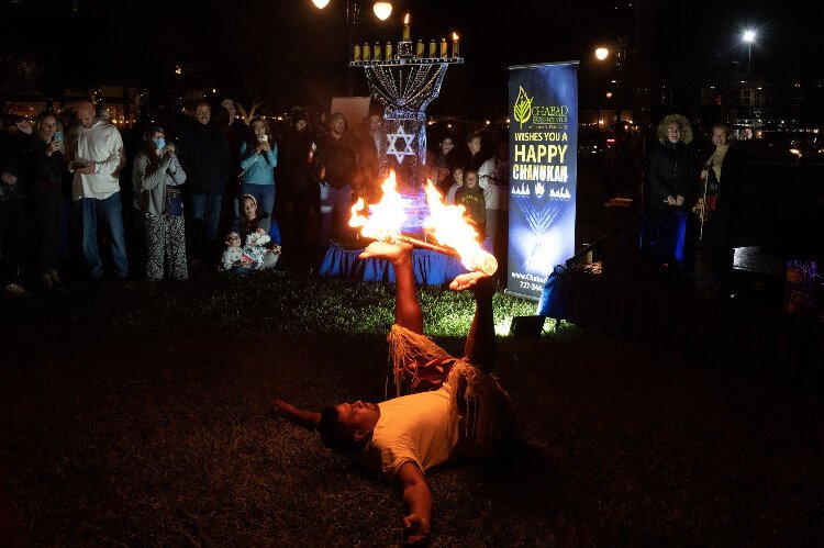 The celebration includes traditional music and dancing and a performance by fire dancers. A few days earlier, the tone was more serious. The Chabad Jewish Center convened a community meeting to discuss a positive response to the wave of antisemitism, launching an Ambassadors of Light initiative.