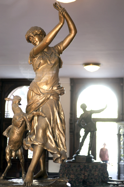 “[Emily Moody] loved music, so we put the money toward restoring the music room, including redoing the woodwork and the [room’s] Wine, Women, and Song painting,” Woods says. Laughing, she adds, “that’s what the Chiselers are — wine, women, and song.”