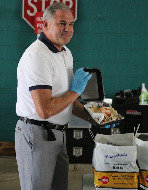 Just two days after being sworn in on April 2, Clearwater Mayor Frank Hibbard handed out free enchiladas and beverages from the Clearwater Beach Taco Bus to police officers on duty this past Sunday as seen in this video. His volunteer stint was part of an Amplify Clearwater program designed to feed first responders and also help local restaurants.