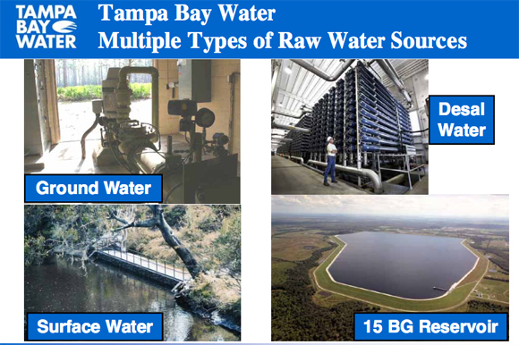 As Christopher Meindl, Associate Professor at the University of South Florida St. Petersburg has written, the water wars prompted the creation of a new regional water utility and, with it, a new approach to sourcing the region’s drinking water. That entity, Tampa Bay Water, last year (2015) supplied an average of roughly 156 million gallons of wholesale water a day through a 2,000-square-mile water system to some 2.4 million residents living across Hillsborough, Pinellas and Pasco counties.