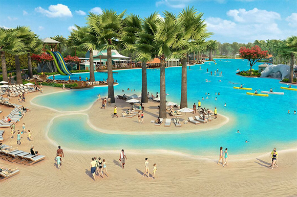 The lagoon, which will feature a beach and entertainment plaza, will host a variety of events, from triathlons to weddings.
