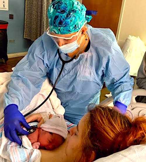 Nurse Allen: It’s challenging to always be six feet apart, but we are doing our very best to maintain distancing to minimize the risk. And, when we are in close quarters, such as during our morning and afternoon huddles or at the nurse’s station, where computers are in close proximity, we are always wearing a mask. In the operating room or with deliveries, there’s no way realistically to stay six feet apart.