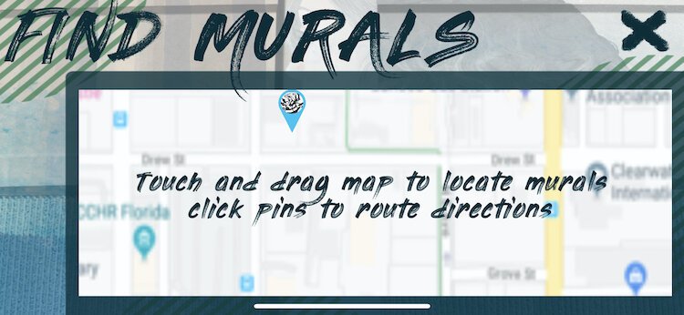 A menu screen of sorts launches the app, giving the user the choice to start the experience, such as finding the aforementioned hotspots, or read about the artist and learn more about the history of the artists and Clearwater’s mural project. There’s another option that includes a mural map.