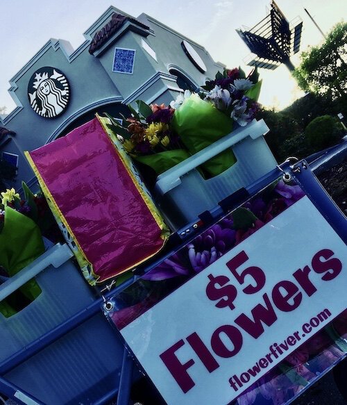 Photo courtesy of FlowerFive – FlowerFive is a pop-up buggy offering fresh bouquets for each.