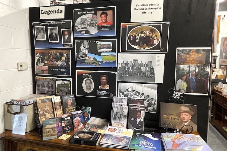 The shelves are arranged by themes as a way to educate visitors. One with a book by the daughter of a Negro League baseball player also has information about the renowned Belmont Heights Little League where former Major League Baseball players Derek Bell, Dwight Gooden and Gary Sheffield played as kids.