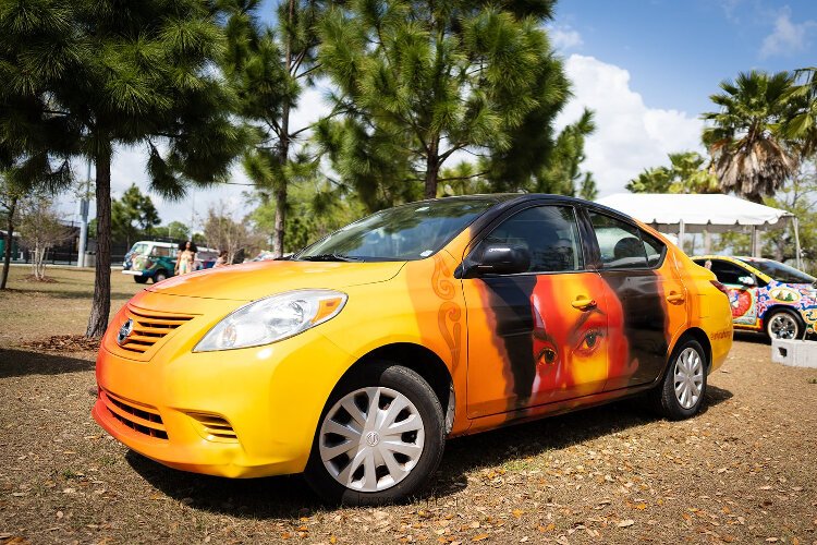 Art car by Nneka Jones, painted during Carmada St. Pete in October 2022. – Carmada en Ybor celebrates 10 years of the Carmada Art Car Showcase and the revitalization of the arts in Ybor City on Saturday, February 3rd.