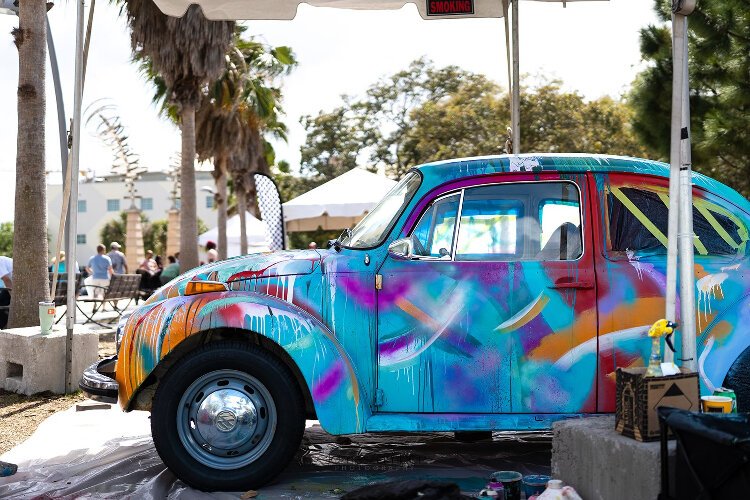 Art car by Emily Tan, painted during the 2023 Gasparilla Festival of the Arts.. – Carmada en Ybor celebrates 10 years of the Carmada Art Car Showcase and the revitalization of the arts in Ybor City on Saturday, February 3rd.
