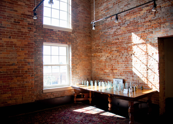 While the building underwent complete rehabilitation, Swope and Kokolakis were diligent in sparing the building’s character and industrial past. Massive rails from the building’s days as a brewery still hang from the rafters, hooks and bracket plates are visible on walls throughout the building. Nails poke through the walls. Chunks of glass bottles used as aggregate in concrete structural components are left exposed.