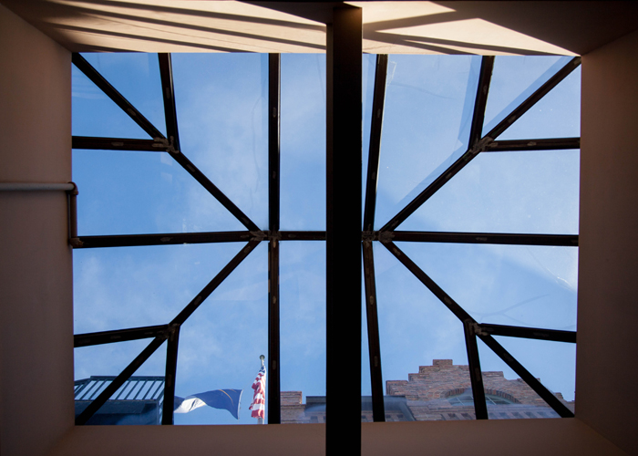 “We tried to respect the history of this place,” Swope states. These little bits of history still speak loud and clear throughout the building, now filled with sleek technological breakthroughs of the digital world, such as flat-screen computer monitors, LED lighting, and lightning-fast WiFi internet connections.