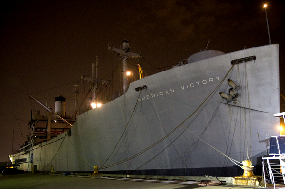 The SS American Victory was built in 1944 by California Shipbuilding in just 55 hours and set sail on June 20, 1945. The 455-foot ship served in WWII, Korea and Vietnam and is now one of only four remaining fully operational WWII ships.