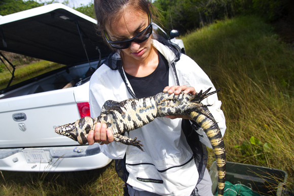 She graduated from Eckerd in 2010 with a double major in marine science and environmental studies and now lives in South Florida where she works for the U.S. Geological Survey (USGS). She’s part of a team of scientists tracking giant tegu lizards and Burmese pythons, two alien invaders that are threatening the balance in the Florida Keys and the Everglades.