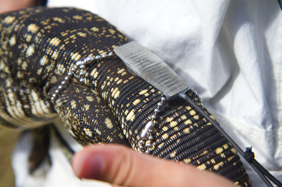 McEachern and her team members also conduct radio telemetry surveillance of both pythons and tegus. She outfits the tegus with transmitters, which she jokingly calls “backpacks.” The backpacks are secured on the reptile with a small beaded chain placed around the pelvic area, she says. It’s definitely a job that requires special care and attention.