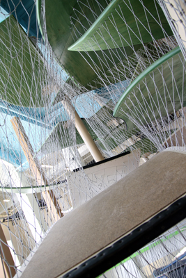 The exhibits include a kid-sized model of Tampa Bay and the Sunshine Skyway Bridge complete with tiny ships and cargo; a media studio with TV cameras and sound effects; and interactive art such as a malleable sculpture made from foam tubes resembling pool noodles.