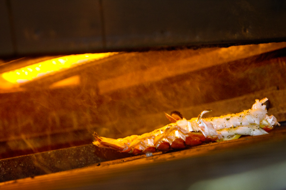 Cut a lobster tail in half down its back and carefully remove the meat from the tail. Dot with lightly salted butter, herbs and lemon slices before replacing the meat and grilling shell-side down for about 6 minutes. Grill oysters until the shell cracks open, resulting in a juicy, medium-rare appetizer.